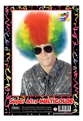 Peluca súper afro multicolor payaso